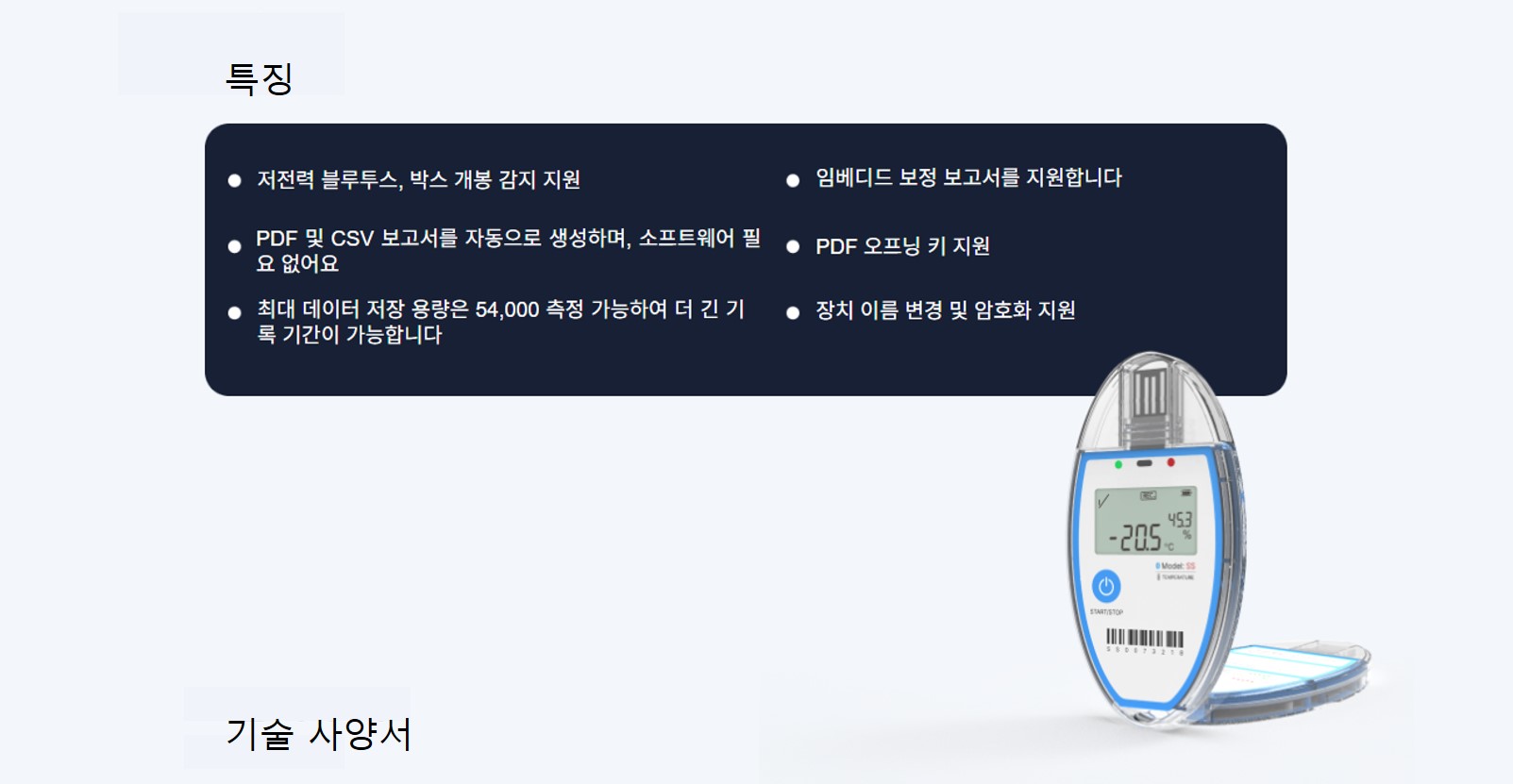 최대 데이터 저장 용량은 54,000 측정 가능하여 더 긴 기록 기간이 가능합니다