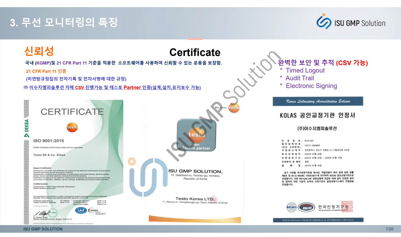 실험실 및 여러 현장에서의 장비의 지속적인 신뢰성을