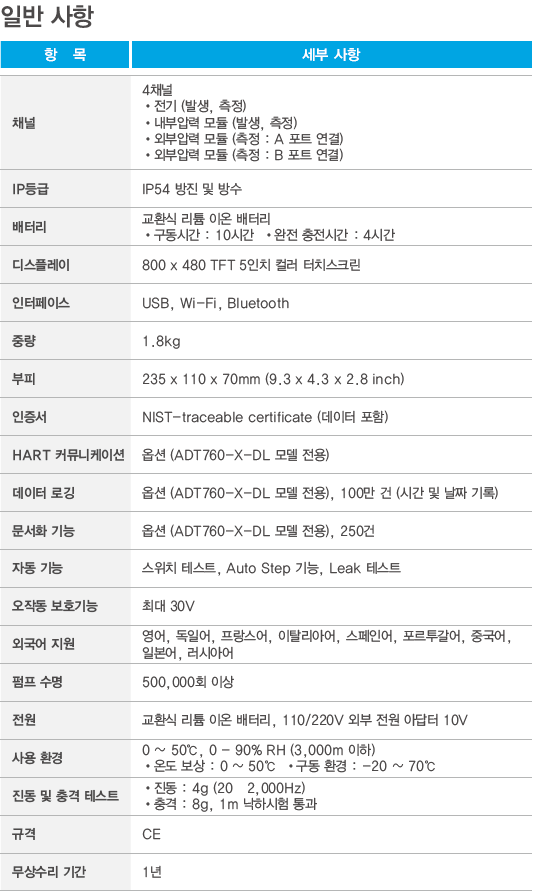 - 4채널 지원 (1-전기(발생, 측정), 1-내부압력(발생, 측정), 2-외부압력(측정))