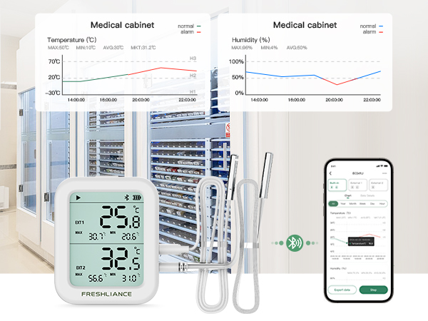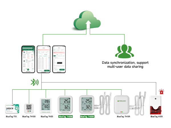 BlueTag TH30B/TH30R 블루투스 온도 및 습도 데이터 로거는 사용이 간편하며, 24시간 내내 주변 온도와 습도를 모니터링하고 기록할 수 있습니다. 블루투스 통신 기술을 통해 사용자는 실시간 및 과거 데이터를 원격으로 확인하고 분석할 수 있습니다. 이 로거는 스마트 홈, 식품, 기록 관리, 의약품 보관, 온실, 축산 등의 분야에 적용될 수 있습니다.