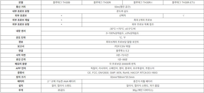 BLUE TAG TH30은 Bluetooth 기반의 다회용 온·습도 데이터 로거로