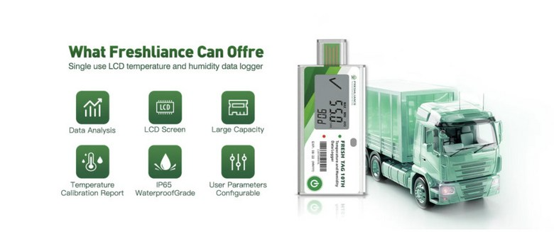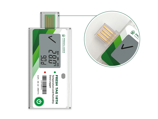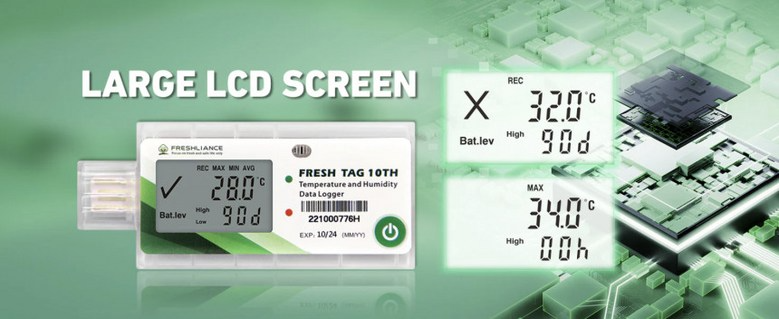 Fresh Tag 10TH는 온도와 습도에 민감한 제품의 운송 및 보관 중 적절한 환경 유지를 위해 설계된 고정밀 일회용 온습도 데이터 로거입니다. 식품, 의약품, 바이오 및 화학 제품의 콜드체인에 적합하며, USB 연결만으로 PDF 및 CSV 보고서를 자동 생성할 수 있어 별도의 소프트웨어 없이 간편하게 사용할 수 있습니다. LCD 화면을 통해 온도, 습도, 최고/최저값 및 알람 상태를 실시간으로 확인할 수 있습니다.