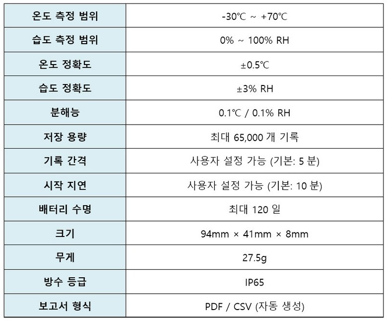 고정밀 측정 – 온도 ±0.5℃, 습도 ±3% RH