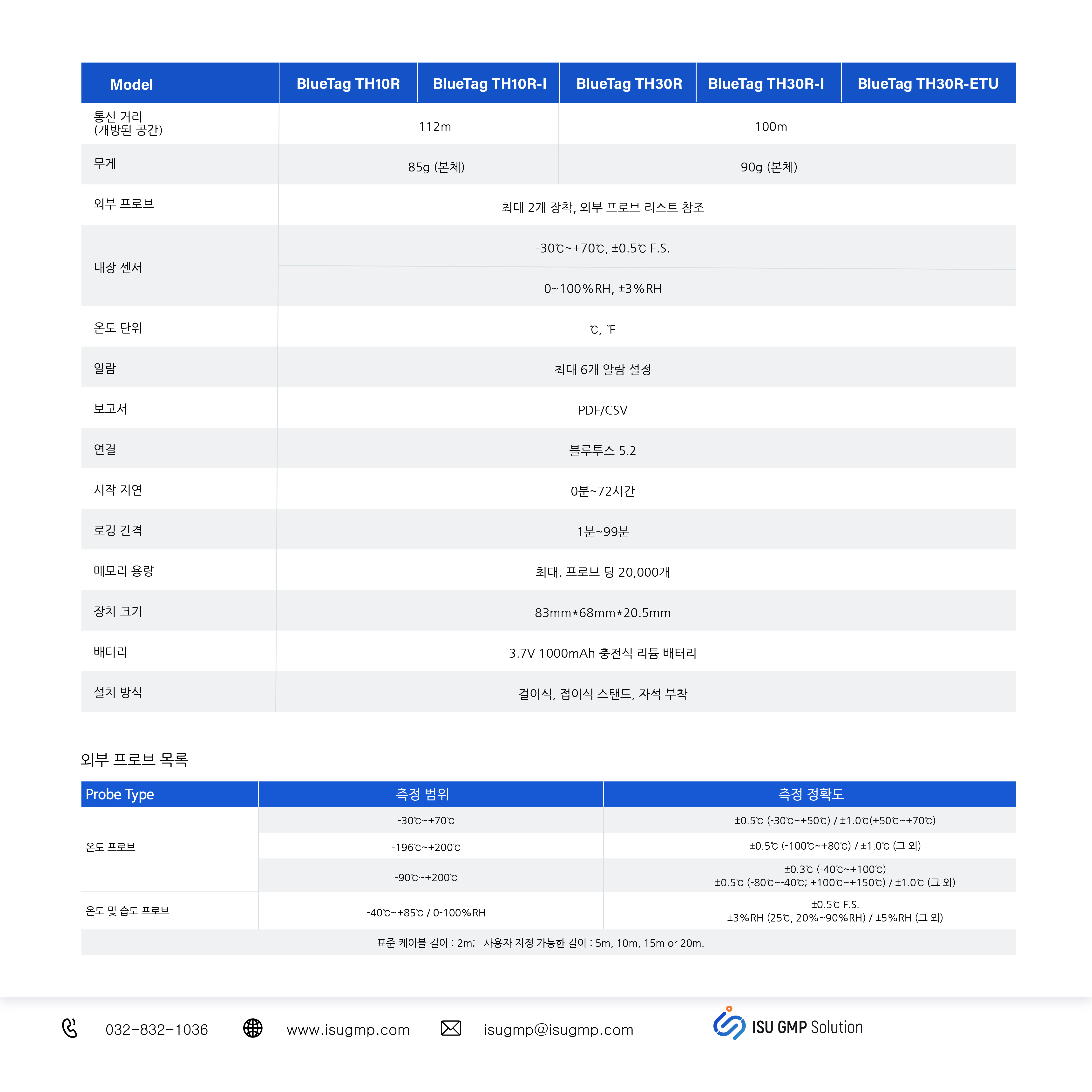 고정밀 센서 내장, 외부 프로브 옵션 지원