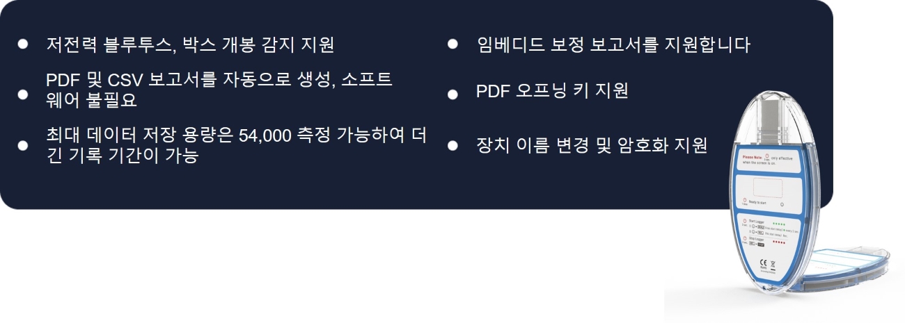 최대 데이터 저장 용량은 54,000 측정 가능하여 더 긴 기록 기간이 가능합니다